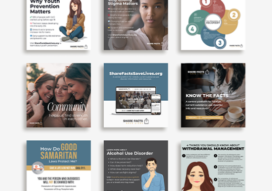 Share Facts Save Lives provides clear, evidence-based information about substance use disorders, harm reduction, treatment, recovery support, and stigma. What began as a concept outlined in a grant proposal evolved into a cohesive brand and communications platform. VC Print developed the name, visual identity, website structure, and coordinated print and digital materials that now support consistent education and outreach across multiple channels.