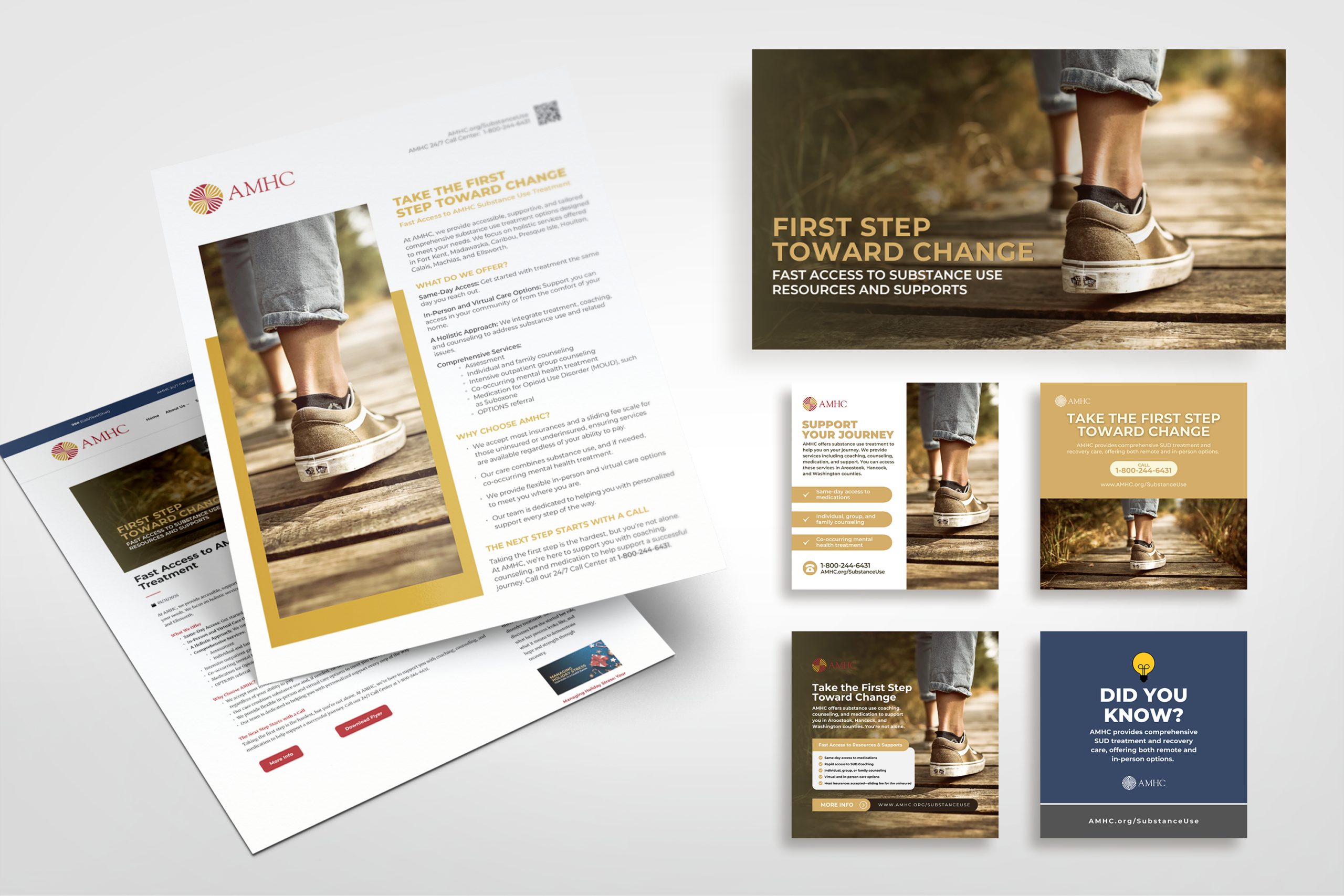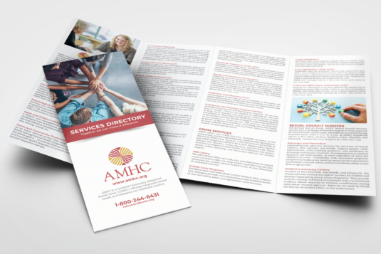 The scope of support has evolved alongside AMHC's internal structure and communications needs. During the early phase of the partnership, VC Print worked closely with senior leadership to develop foundational communications systems and brand standards, and to coordinate outreach across multiple service areas. For more than six years, this work produced a connected communications infrastructure tailored to the complexity and sensitivity of behavioral health communications, encompassing website architecture, campaign frameworks, editorial standards, visual templates, and a growing library of public-facing materials. Beginning in 2026, content development and editorial planning shifted to AMHC's internal team. VC Print continues to support the organization through print fulfillment, website editing, blog production, and updates to established campaign assets.